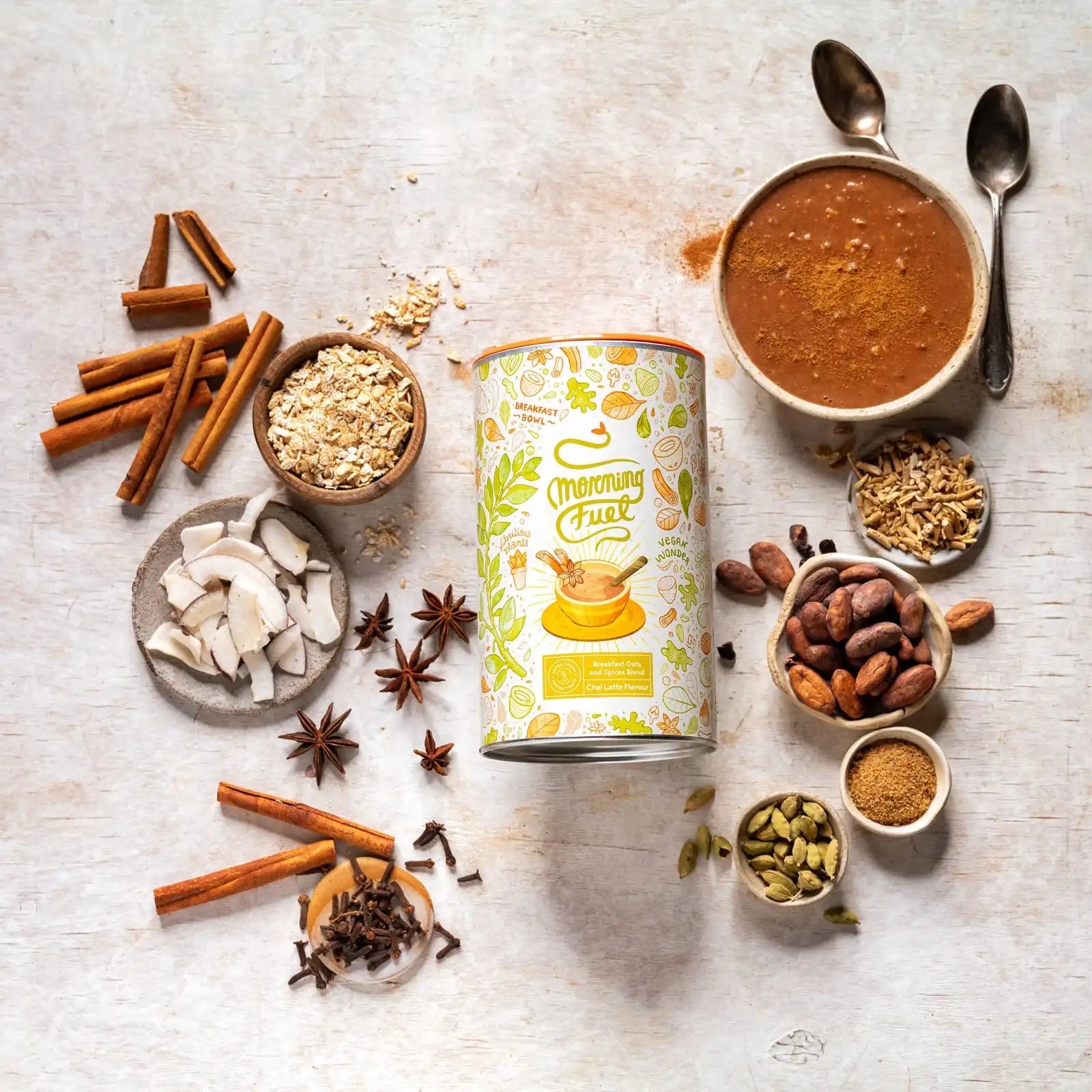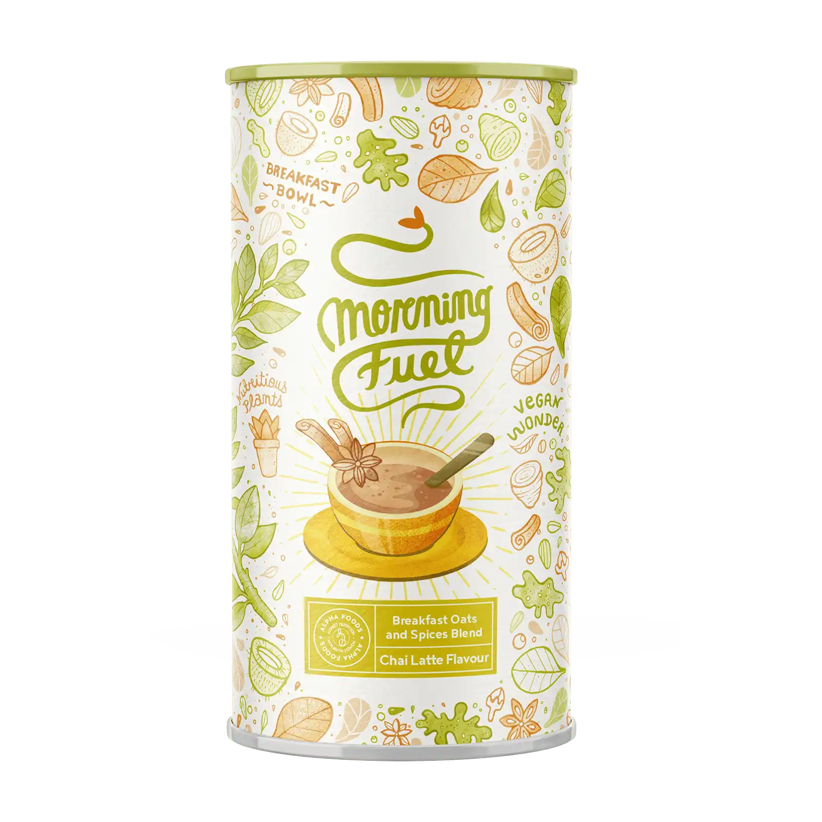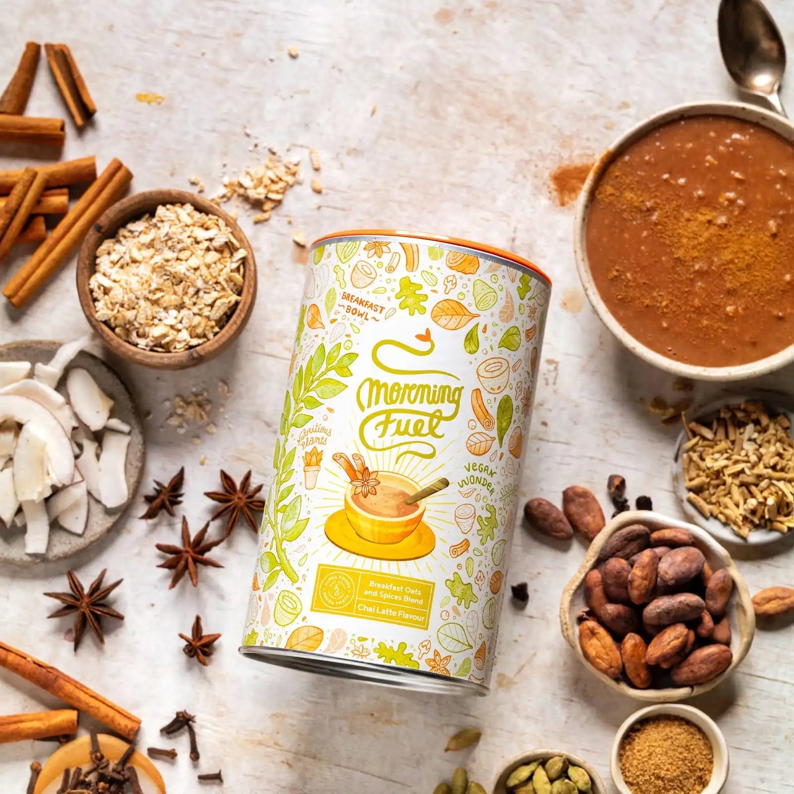 Vegan breakfast blend with chai latte flavour. Contains protein, complex carbohydrates, and maca root.