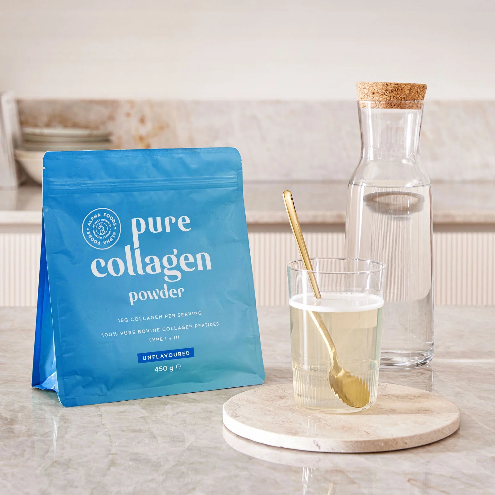 Collagen is an essential, structural protein that improves your skin's moisture and elasticity, reducing the appearance of fine lines and wrinkles.
